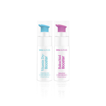 This synergistic duo combines two powerhouse boosters to help fortify, smooth, and enhance the skin’s appearance. The Vitamin D3+ Booster features a blend of Vitamin D precursors and natural actives to help support the skin’s barrier and promote a more even, radiant complexion. The Bakuchiol Booster, a gentle plant-derived alternative to retinol, helps refine texture and visibly improve firmness and clarity over time.